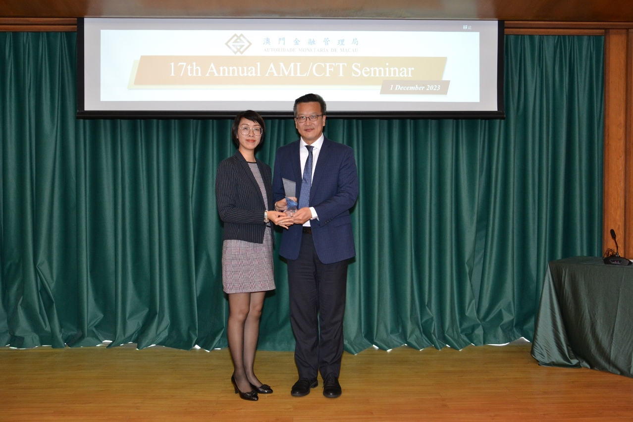 首屆“優秀可疑交易舉報個案嘉許活動”經評審委員會評選,由中國銀行股份有限公司澳門分行獲得最佳可疑交易案例,金融情報辦公室於2023年12月1日在澳門金融管理局舉辦的“反洗黑錢及反恐融資研討會”上頒發嘉許活動獎項,並邀請獲獎機構代表在研討會上介紹獲獎之舉報案例,冀銀行同業能借鑑獲獎案例,進一步了解有效的可疑交易識別工作,同時藉此加強內部風險防控的力度,深化防範及打擊潛在金融犯罪風險的各項措施,使更好地預防及阻截金融犯罪。