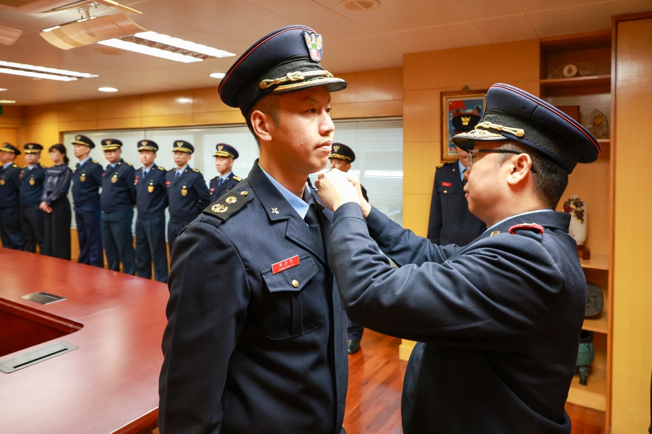 梁毓森局長在儀式上勉勵各官員要克盡己任、廉潔奉公、遵守法紀,繼續在各自的崗位上發揮所長,為澳門社會的安全穩定做好各項工作,貢獻力量。