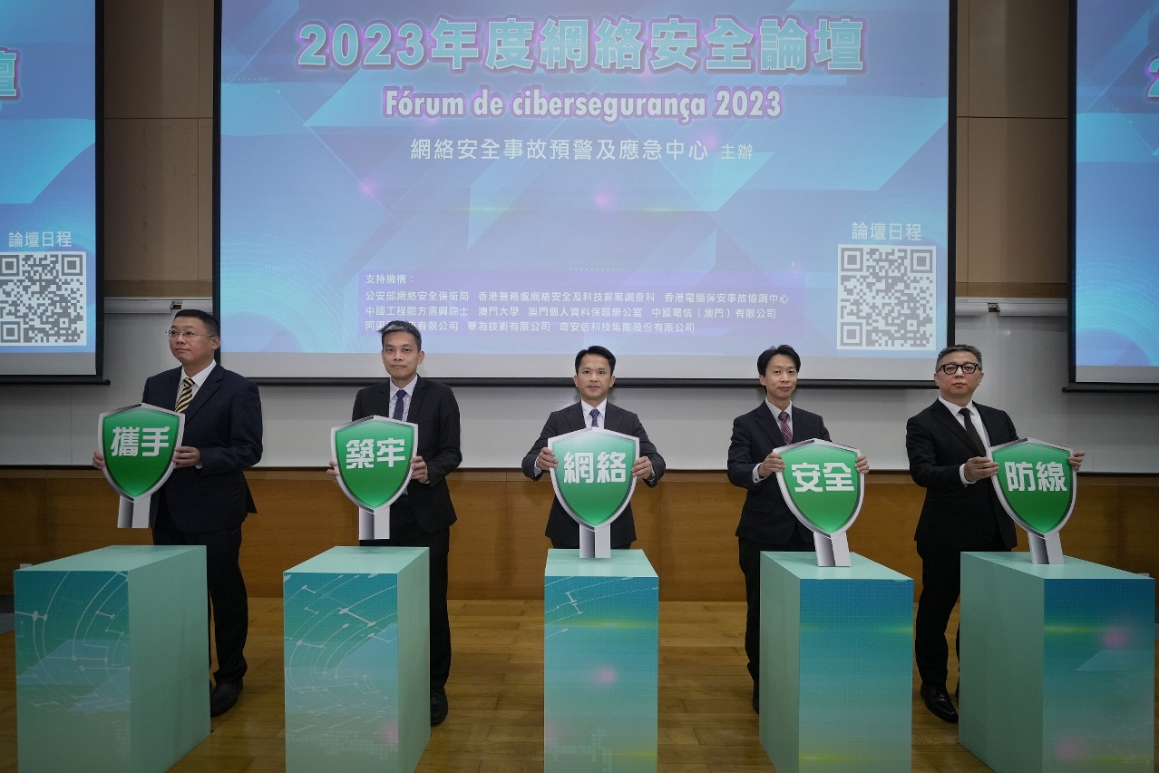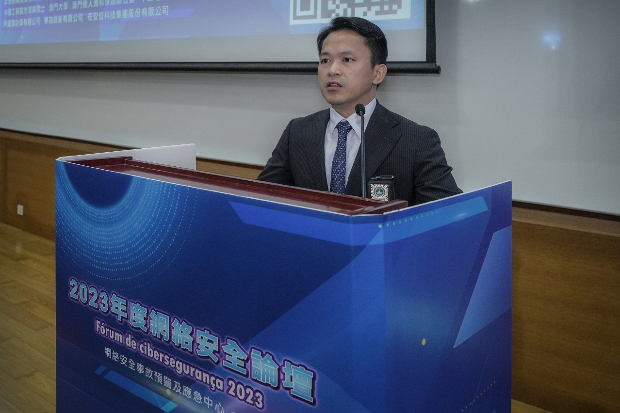 論壇的開幕儀式由網安中心各組成部門,以及邀請到澳門中聯辦代表共同主持。司法警察局代局長蘇兆強在致辭時指出,澳門《網絡安全法》生效近四年,在網絡安全委員會協調及統籌下,各參與方各司其職並通力合作,朝著築牢網絡安全防線之共同目標,有序落實多項工作,讓澳門網安治理體系進入法治軌道,安全意識和技術能力持續加強。
