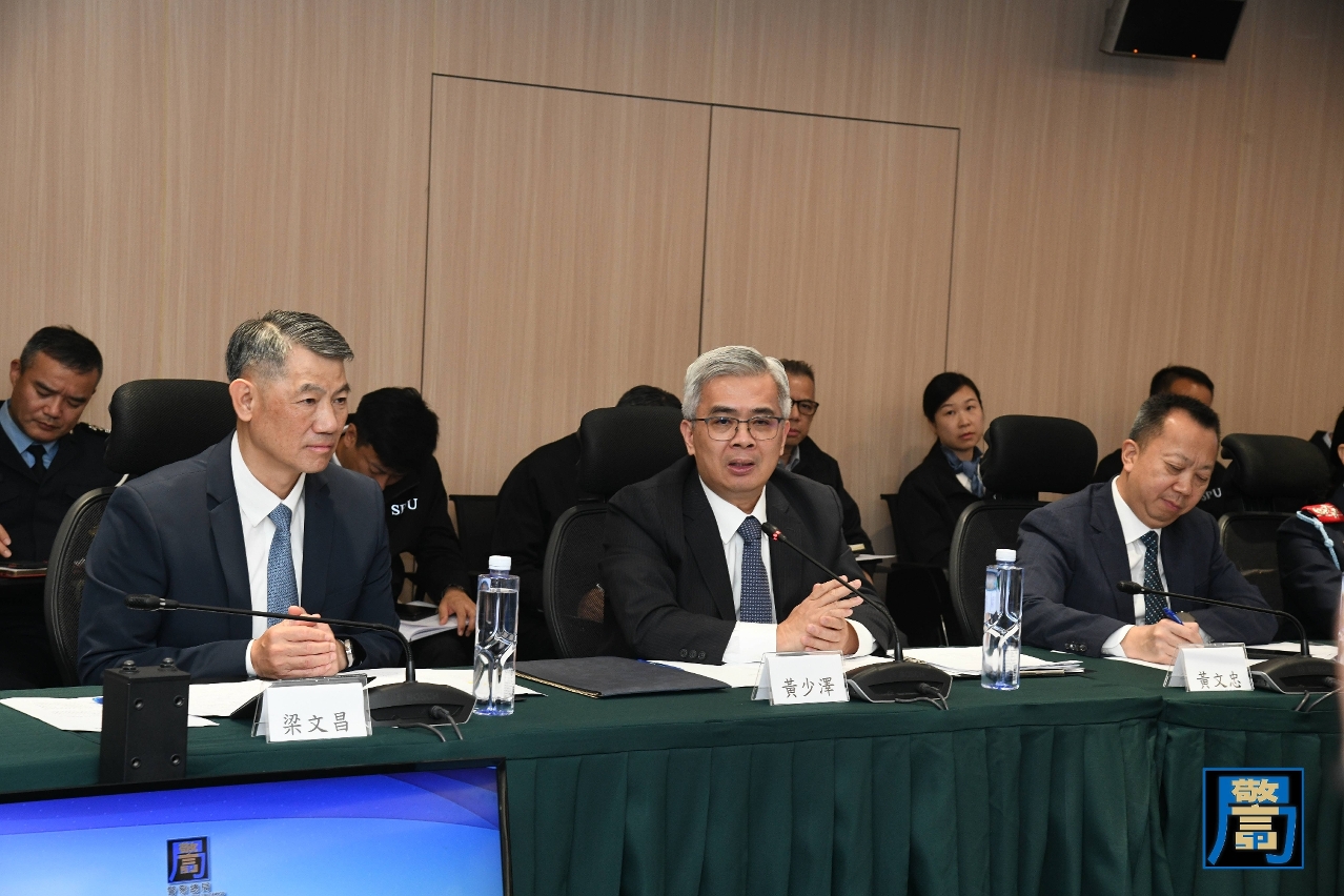 出席會議的保安範疇領導還包括:司法警察局局長薛仲明、治安警察局局長吳錦華、澳門保安部隊事務局局長郭鳳美、澳門保安部隊高等學校校長黃子暉、警察總局局長助理劉運嫦、王健、澳門海關代助理關長葉華釗、消防局副局長區耀榮等。