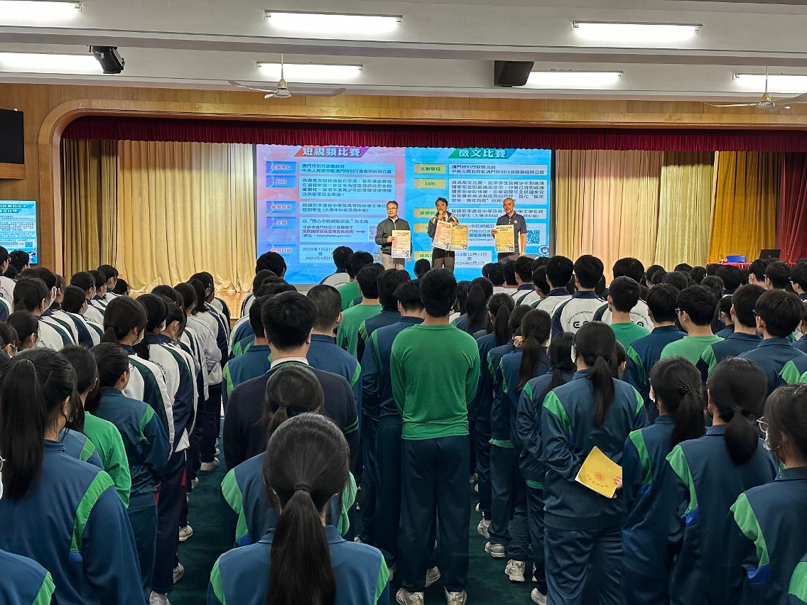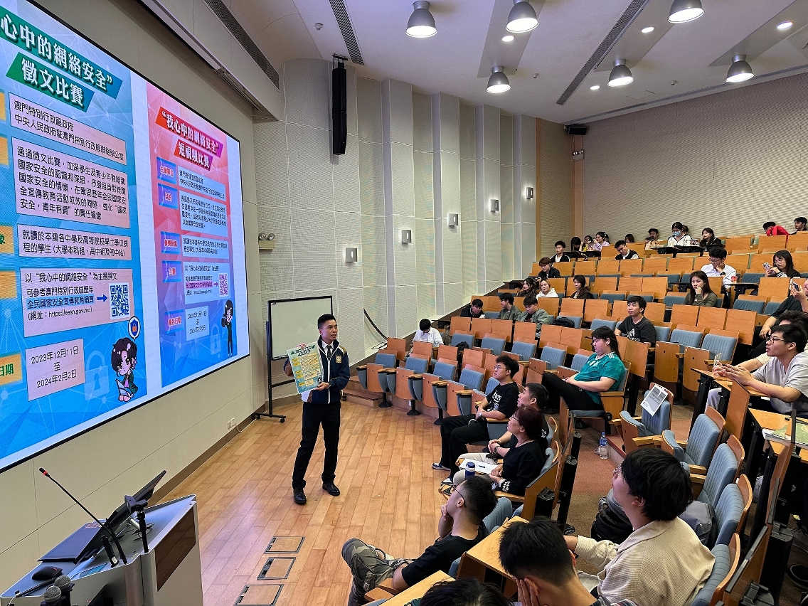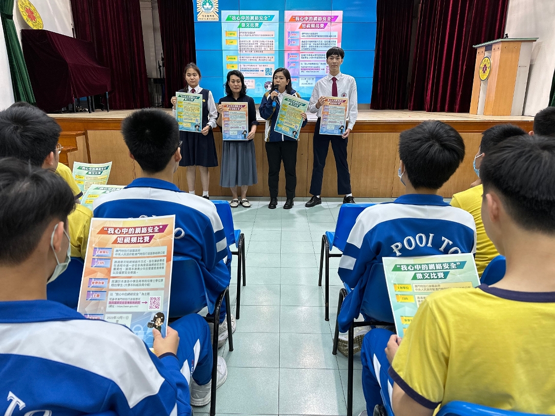 由澳門特別行政區政府、中央人民政府駐澳門特別行政區聯絡辦公室聯合舉辦的“我心中的網絡安全”徵文及短視頻比賽現正接受報名,司法警察局積極派員走進校園開展相關宣傳推廣工作,鼓勵學生踴躍參與。