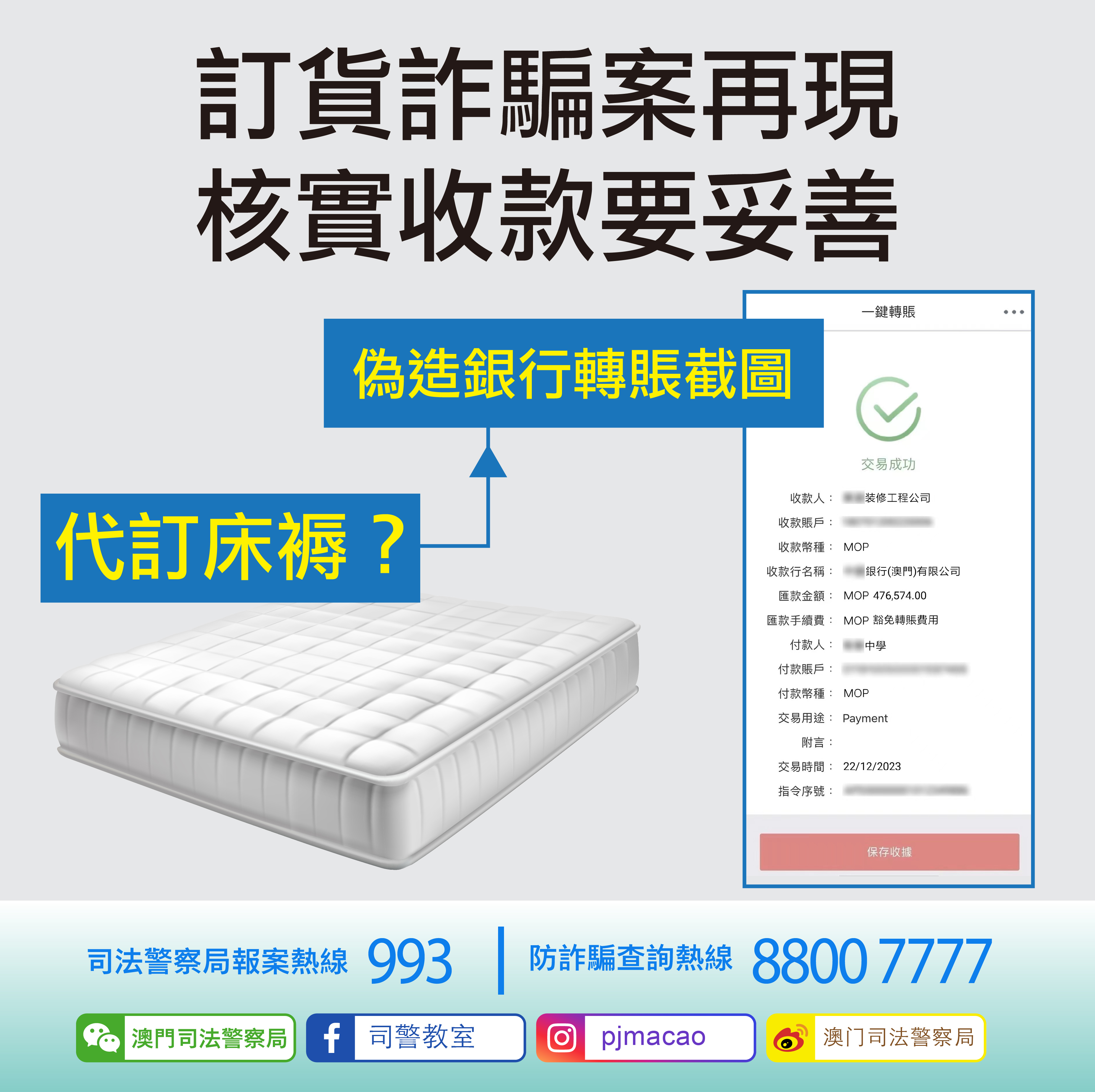 3.懷疑遇騙,請即致電司警局防詐騙查詢熱線8800 7777或報案熱線993。