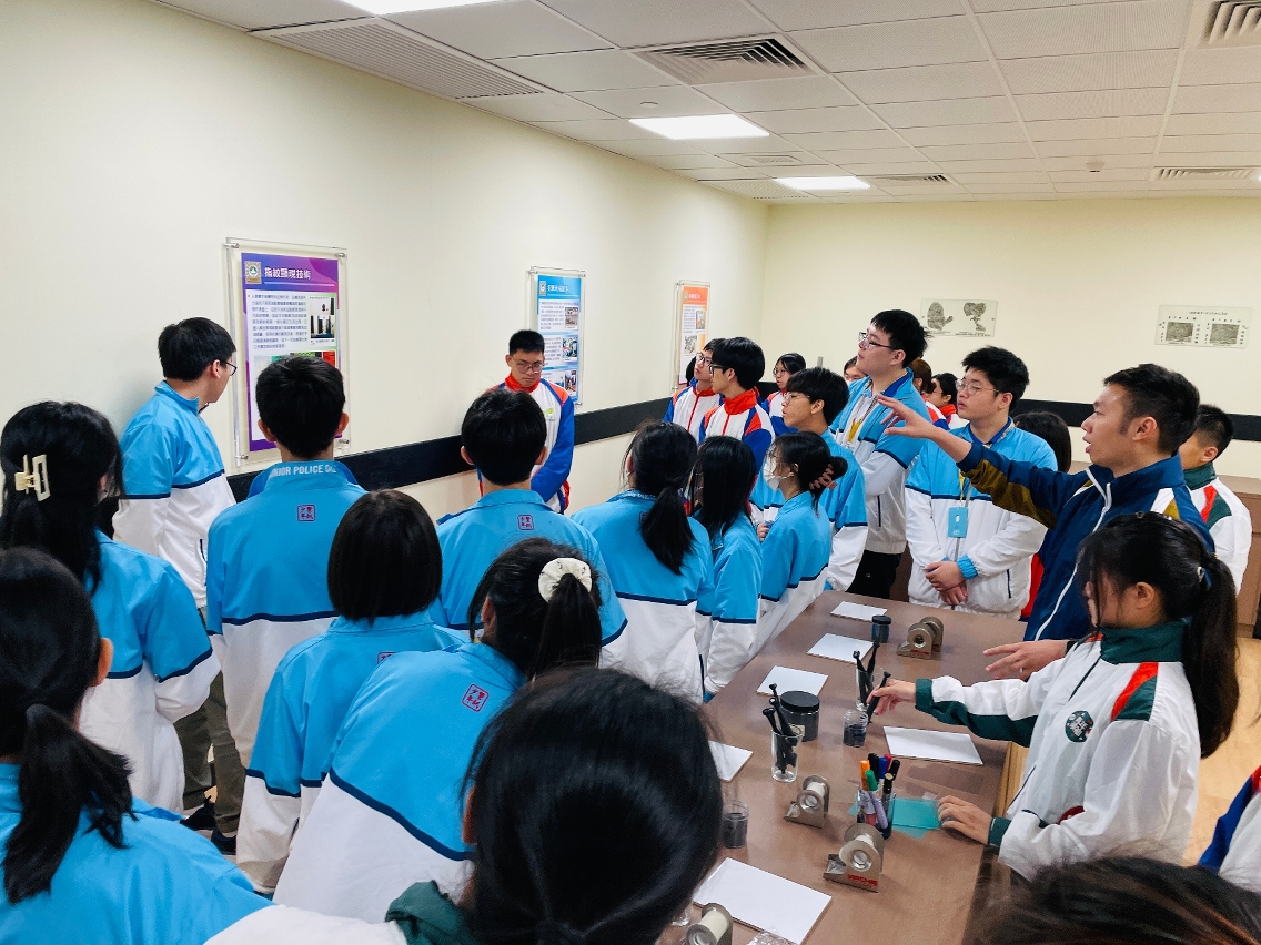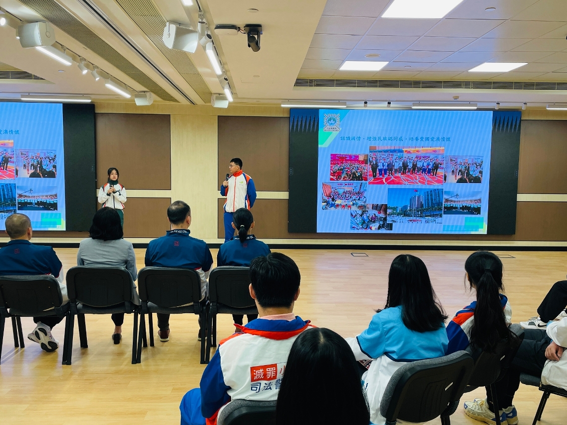 香港警務處公共關係部少年警訊組總督察胡世耀率領少年警訊會員到訪參觀司法警察學校,並與司警局“社區安全青年領袖計劃”及“滅罪小先鋒種子計劃”學員會面交流,兩地青年互相分享參與警方防罪宣傳工作的心得和體會,促進對兩地警務工作的認識,並建立了友誼。