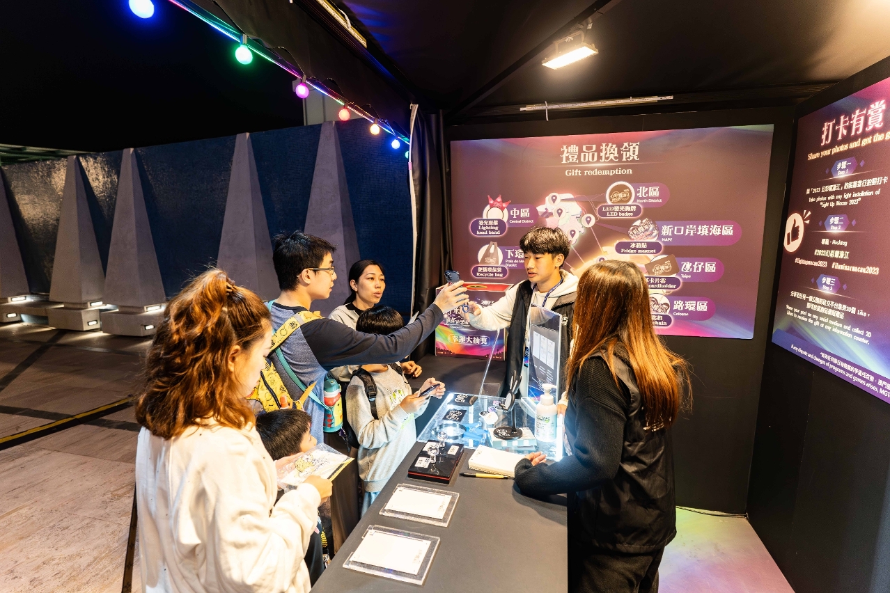 各區諮詢站的紀念品各有不同,中區 – 發光頭箍,下環區 – 便攜環保袋,南灣區 – 發光小夜燈,新口岸填海區 – 冰箱貼,北區 –發光胸牌,氹仔區 – 皮革卡片套,路環區 – 鎖匙扣,大家穿梭各區集齊7款。紀念品數量有限,送完即止。