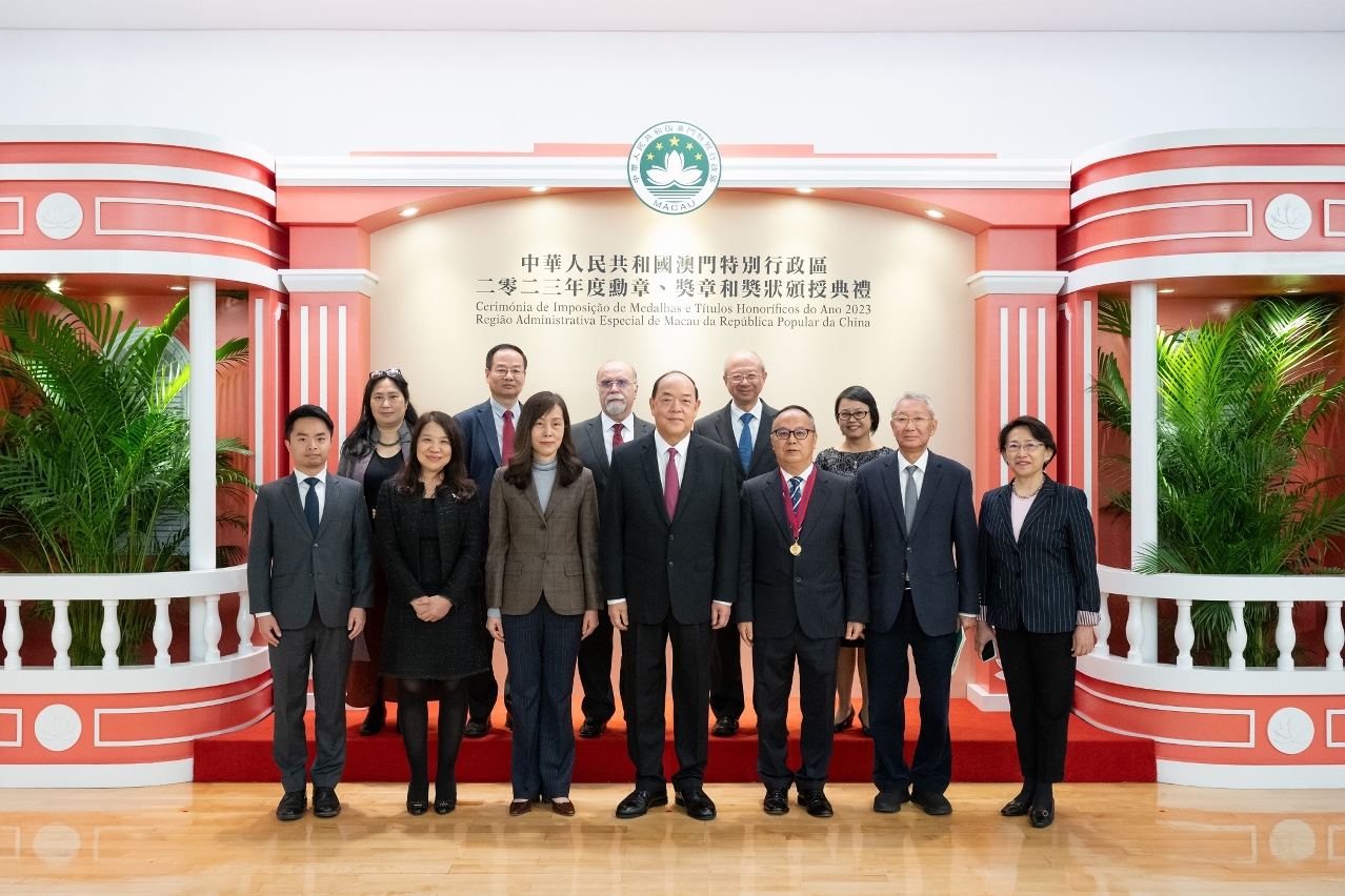 澳門特別行政區政府今(19)日舉行2023年度勳章、獎章和獎狀頒授典禮,由行政長官賀一誠主持。其中,澳門大學校長宋永華獲頒授教育功績勳章,以表彰其在教育事業方面的傑出貢獻。