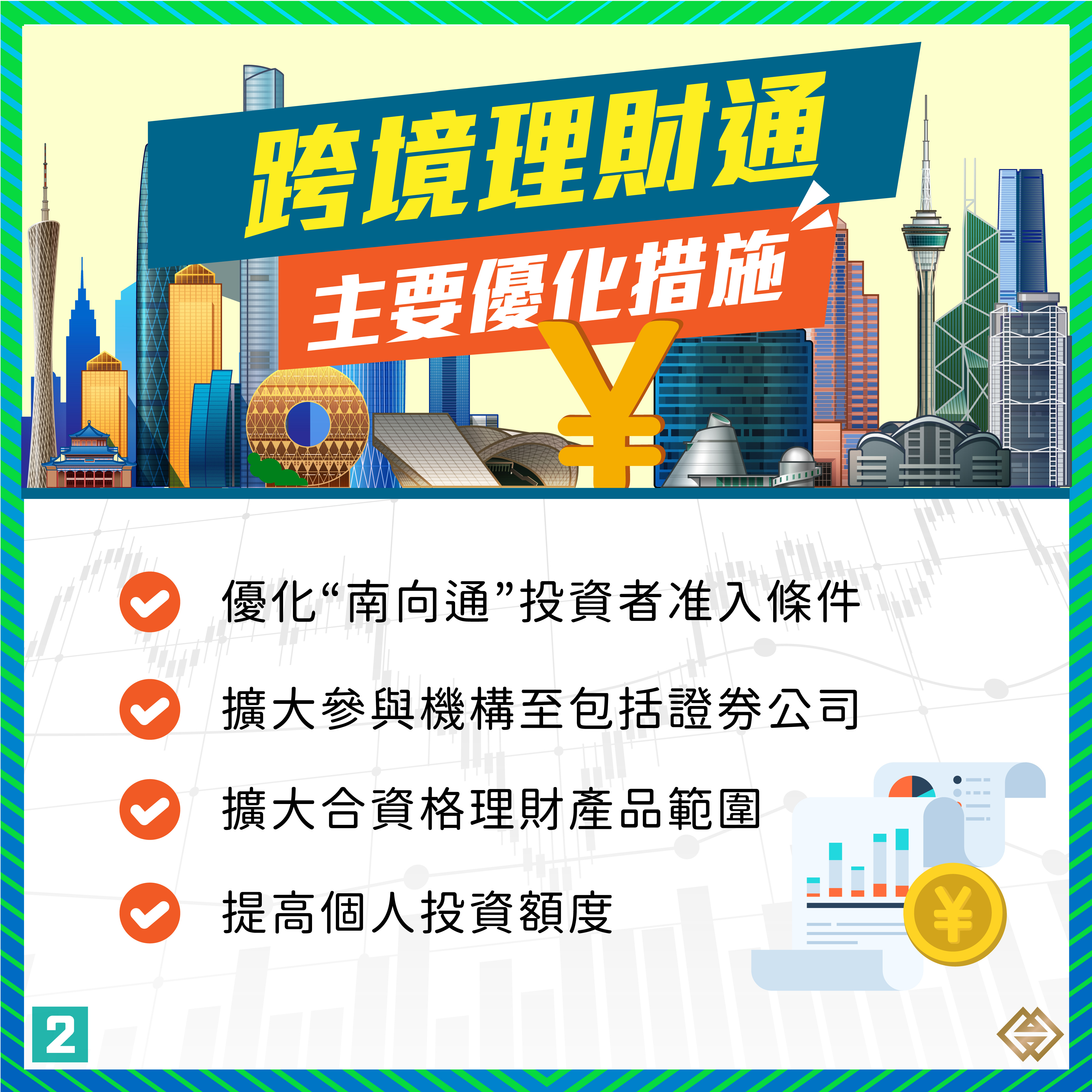 為貫徹落實國家關於建設粵港澳大灣區的戰略部署,深化粵港澳金融市場互聯互通,澳門金管局經與内地及香港相關金融管理部門共同協商,已於2023年9月28日宣佈,進一步優化粵港澳大灣區“跨境理財通”業務試點,主要包括優化“南向通”投資者准入條件、擴大參與機構範圍、擴大合資格理財產品範圍,以及提高個人投資額度等優化措施。隨後,內地和港澳金融管理部門對相關實施細則或業務指引進行修訂完善。