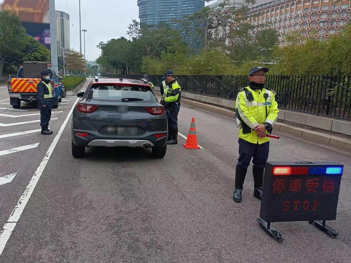 查車行動方面,共截查34輛車輛,合共檢控10宗違例,包括2宗涉及未能出示有效保險文件、2宗涉及駕駛資格未滿一年所駕車輛沒有安裝識別標誌、1宗涉及電單車駕駛資格未滿一年載客、2宗涉及使用遠光燈行車、1宗涉及危險載貨、1宗涉及沒有安裝倒後鏡,以及1宗涉及沒有登記外國駕駛執照。