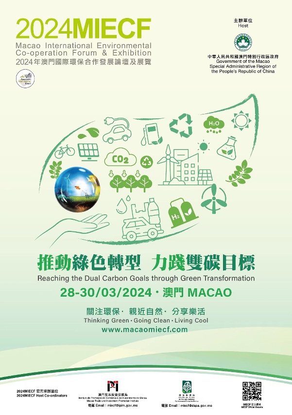 “2024年澳門國際環保合作發展論壇及展覽”(2024MIECF)將於2024年3月28至30日舉行,活動在多方面重磅升級,將舉辦系列專業國際性論壇,邀請重量級嘉賓聚焦ESG(環境、社會和公司治理)、綠色金融、碳中和及綠色轉型等環保熱點題目,並首設綠色轉型服務櫃台等方式,助力企業把握ESG前瞻趨勢,提前做好升級轉型部署;活動期間將展出多個領域的環保產品與服務,更增設“綠色智慧產業展區”,連同綠色配對、綠色公眾日及交流活動,配合國家“雙碳”目標,落實執行澳門特別行政區政府“1+4”適度多元發展策略及《澳門長期減碳策略》等環境保護方面之重點政策,推動綠色可持續發展。