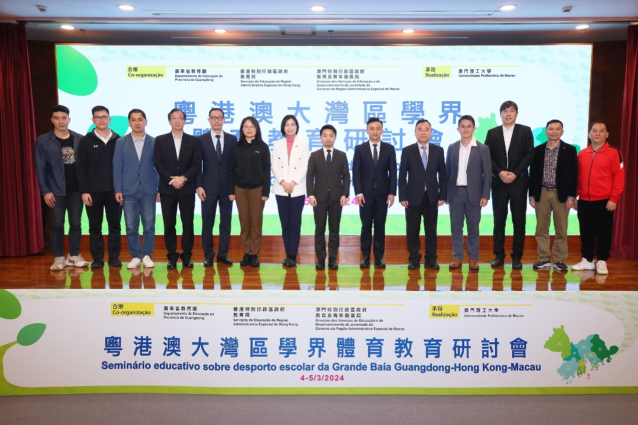 由廣東省教育廳、香港特別行政區政府教育局和澳門特別行政區政府教育及青年發展局合辦,澳門理工大學承辦的“粵港澳大灣區學界體育教育研討會”於2024年3月4日至5日在澳門理工大學順利舉行。主辦單位以“第一屆粵港澳大灣區學界體育比賽─乒乓球團體比賽”作為平台,把握粵港澳大灣區各城市的學校領導和體育教師在澳參賽之契機開展研討會,以推動粵港澳大灣區學校體育的創新和融合發展,不斷提高粵港澳大灣區學校體育產、學、研深度融合水平。
