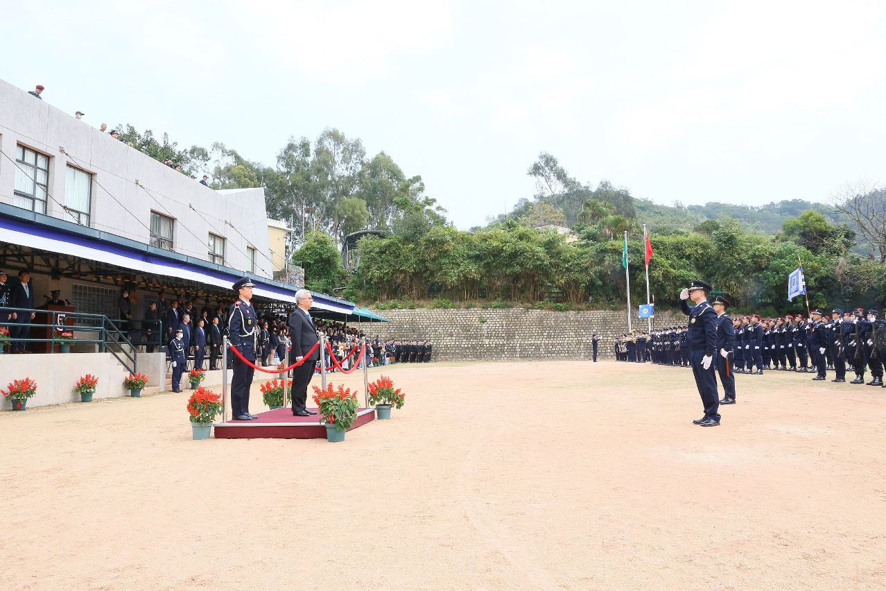 畢業學員與受閱部隊踏着鏗鏘的步伐,在警察樂隊高亢有力的演奏旋律中,列隊行進向嘉賓們致敬。其後,畢業學員演示了花式步操以及警體訓練,昂揚的姿態及拼搏的精神,獲得現場熱烈的掌聲,典禮在圓滿中落幕。