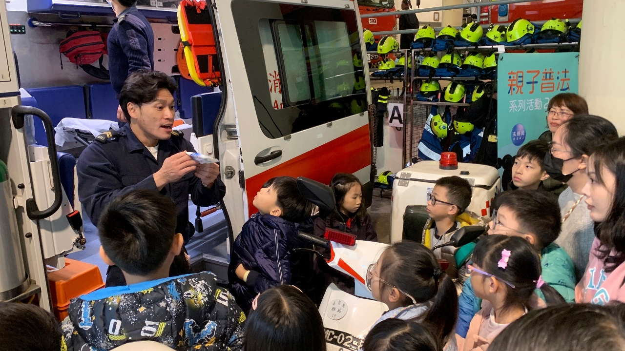法務局日前舉辦一場以體驗消防員日常工作為主題的親子普法活動,組織親子們參觀消防博物館,藉此加強親子們防火安全意識,活動吸引了38名親子參加。