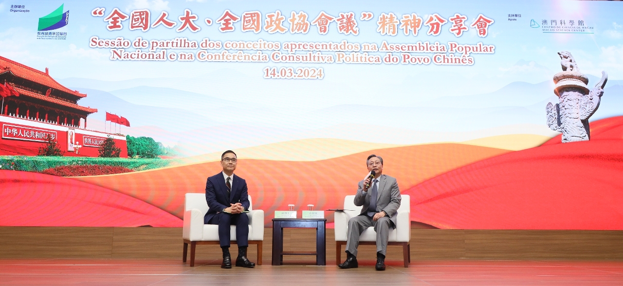 高開賢先生分享兩會的體會和感受,介紹兩會的歷史由來,指兩會工作報告中字字珠璣,吸納全國各地代表的意見和提案,作出一年的工作部署,並指示了如何有效貫徹落實各項政策的指標和舉措,充分展示民主協商的治理氛圍,以及以人民為中心的總體方向。高開賢先生亦表示國家領導十分關心澳門特區的發展,聽取澳區代表委員的意見,並闡釋新質生產力的詞意為以創新、高質量的生產力推動國家發展,過去習近平主席曾經表示國家的發展離不開港澳,期望澳門因地制宜發揮本地的特有優勢,珍惜國家的惠澳政策措施,抓緊更大更好的發展機遇,不負國家對澳門寄予厚望。