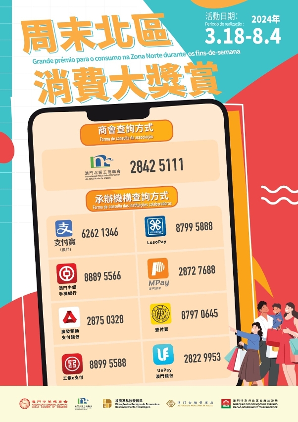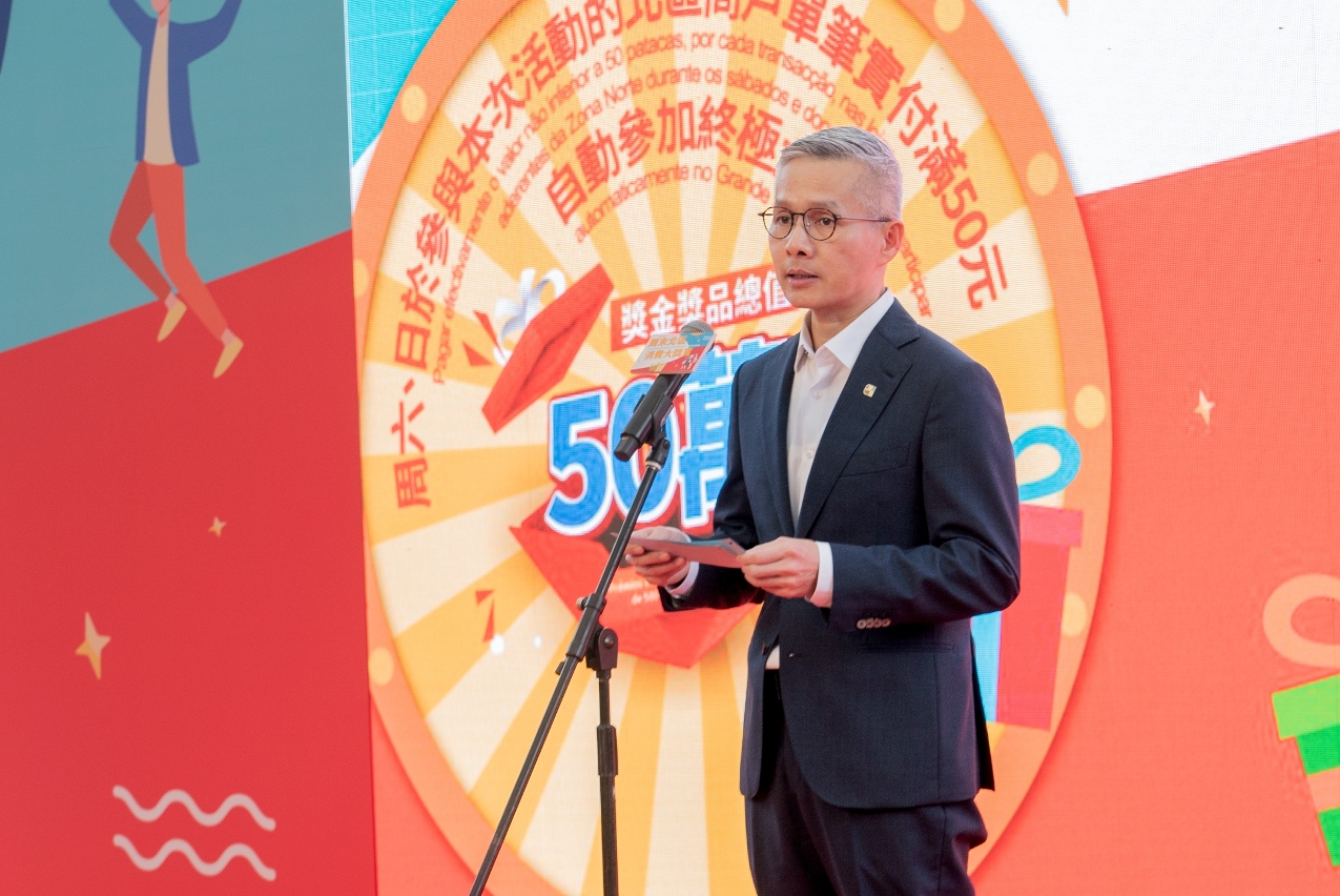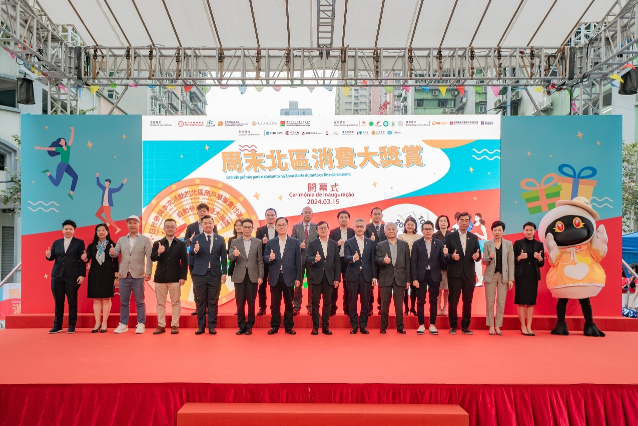 為提振北區經濟,進一步改善民生區商戶的經營,特區政府聯同澳門中華總商會、澳門北區工商聯會,於3月18日至8月4日期間,合辦“周末北區消費大奬賞”活動,今(15)日在綠楊花園休憩區舉行開幕儀式。