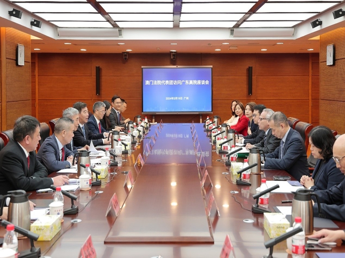 應廣東省高級人民法院院長張海波邀請,終審法院院長岑浩輝率領澳門特別行政區法院代表團一行9人於2024年3月18日至21日訪問粵港澳大灣區內地人民法院。