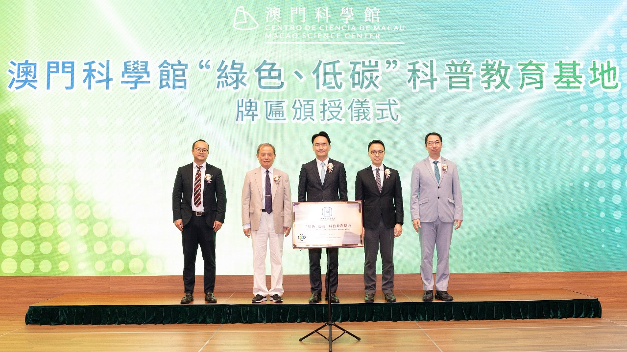 有關基地牌匾頒授儀式於3月26日在澳門科學館展覽中心舉行,在教育及青年發展局局長、澳門科學館股份有限公司股東會主席龔志明、中國城市科學研究會綠色建築與節能專業委員會主任王有為,以及中國綠色建築與節能(澳門)協會會長卓重賢的見證下,中國城市科學研究會綠色建築與節能專業委員會副秘書長戈亮向澳門科學館館長邵漢彬頒授“綠色、低碳”科普教育基地牌匾。科學館董事會、澳門科技大學、中國綠色建築與節能(澳門)協會、中國建築工程(澳門)有限公司、澳門建築業協會等代表出席儀式。