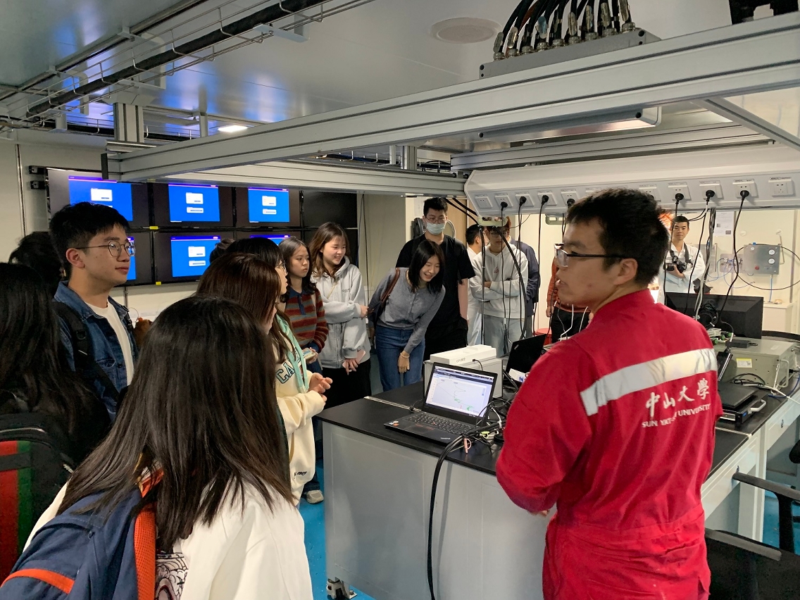 “中山大學號”是中國目前排水量最大、綜合科考能力最強的科考船。在科考船員的陪同下,學生首先參觀船上的不同設施,包括乾、濕實驗室和專為科研而設計的各種吊臂,親身體驗中國當前卓越的科考硬件技術設備。隨後,學生與船長、大副、二副和其他船員進行了互動交流,了解船員在海洋執行任務時所遇到的故事和面臨的挑戰。