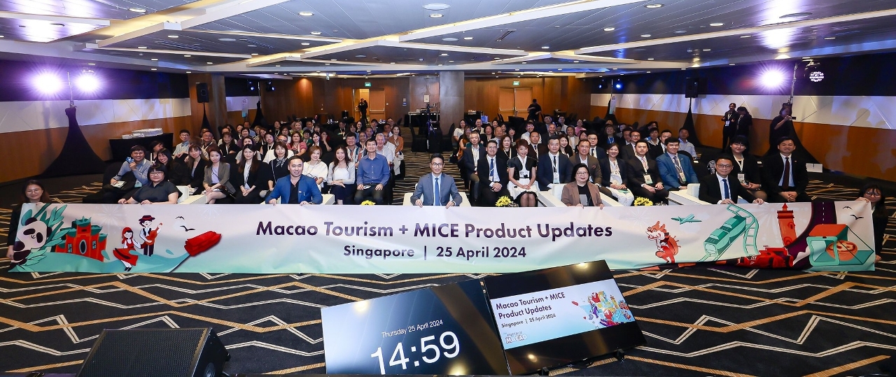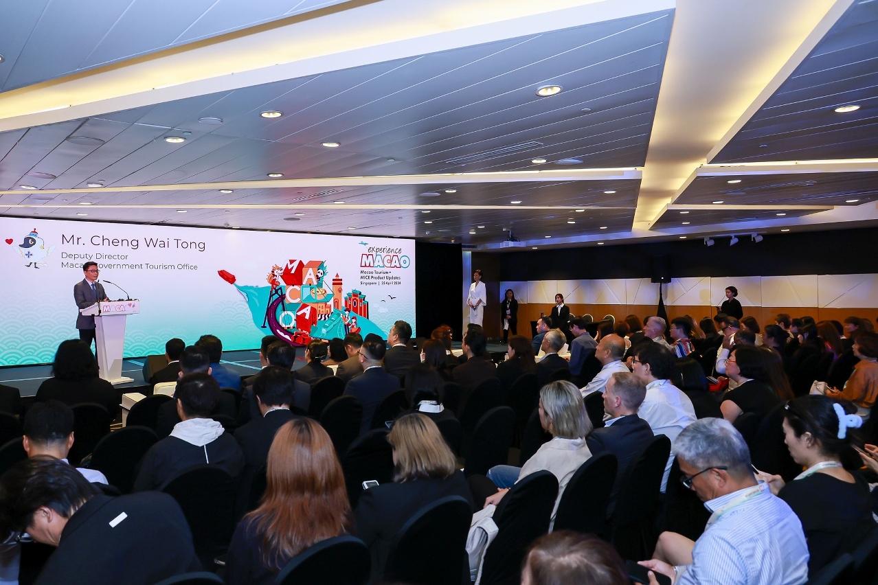 澳門“旅遊+會展”最新產品資訊推介及洽談會今(25)日在新達城會議中心舉行。澳門特區政府旅遊局副局長程衛東、新加坡全國旅行社協會執行委員會秘書長陳章豪、澳門貿易投資促進局行政管理委員會執行委員黃伊琳和橫琴經濟發展局文旅會展商貿處處長林衍傑等嘉賓,聯同澳門六大綜合度假休閒企業代表、澳門和新加坡旅遊業界等逾100人出席活動。