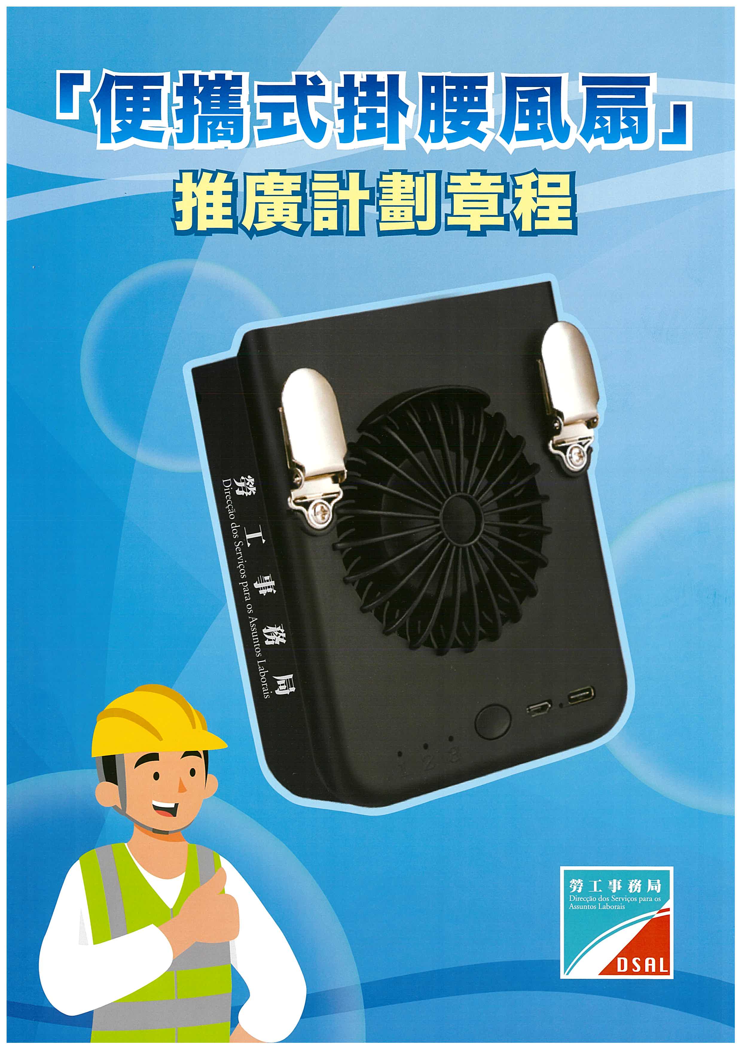 本澳夏季天氣炎熱,建築業工人、戶外工作及室內接近熱源工作者需要長時間在炎熱和潮濕的環境下進行工作,為預防中暑意外的發生,勞工事務局自2018年推出「抗熱服及防曬帽套」推廣計劃,本年更新增推出「便攜式掛腰風扇」,藉此提高上述工作者於工作時的舒適度,以保障工人的職業安全與健康,同時提升工作效率和生產力。計劃由即日起接受申請。