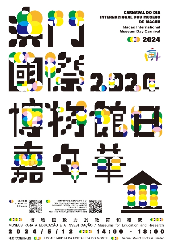 為響應5‧18國際博物館日,澳門22間博物館聯合舉辦文博界年度盛事“2024澳門國際博物館日嘉年華”,開幕儀式將於5月12日(星期日)下午3時在大炮台花園舉行,當日設有攤位遊戲、工作坊及手機有獎遊戲等活動,歡迎公眾參與。