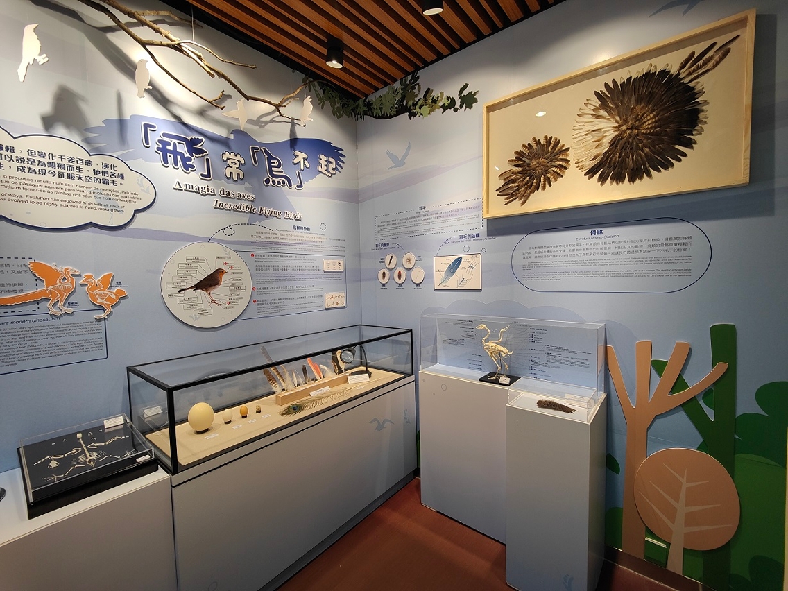 生物的演化賦予鳥類各種獨特的構造,鳥類可說是為翱翔而生,身體上各種結構的演化都令其對飛行具高度的適應性。澳門動物標本展示館現正舉行的鳥類特展—“飛”常“鳥”不起,從羽毛、外型到內部骨骼,由外到內介紹鳥類,透過標本介紹鳥類為適應飛行的習性而演化出的各種特殊構造,拆解鳥類了不起的演化秘密。除了介紹鳥類對飛行的各種演化適應外,亦展示各種鳥巢、鳥蛋及羽毛等標本。