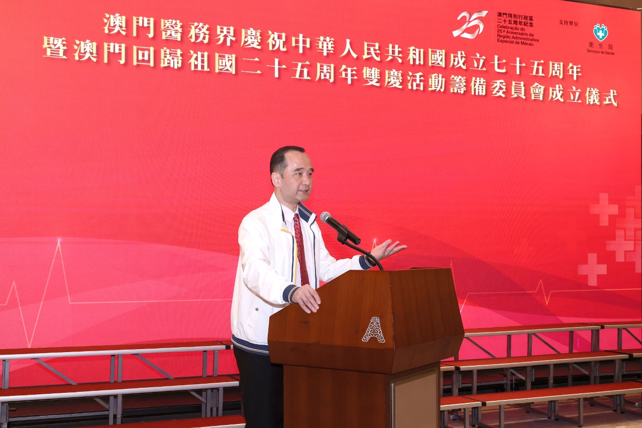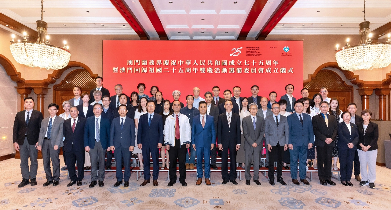 為慶祝中華人民共和國成立七十五周年及澳門回歸祖國二十五周年,澳門醫務界日前成立了“澳門醫務界慶祝中華人民共和國成立七十五周年暨澳門回歸祖國二十五周年雙慶活動籌備委員會”,並舉行了成立儀式,旨在凝聚醫務界力量迎接雙慶年,攜手推動本澳醫療衛生事業持續發展。衛生局羅奕龍局長、郭昌宇及鄭成業副局長等出席了成立儀式。