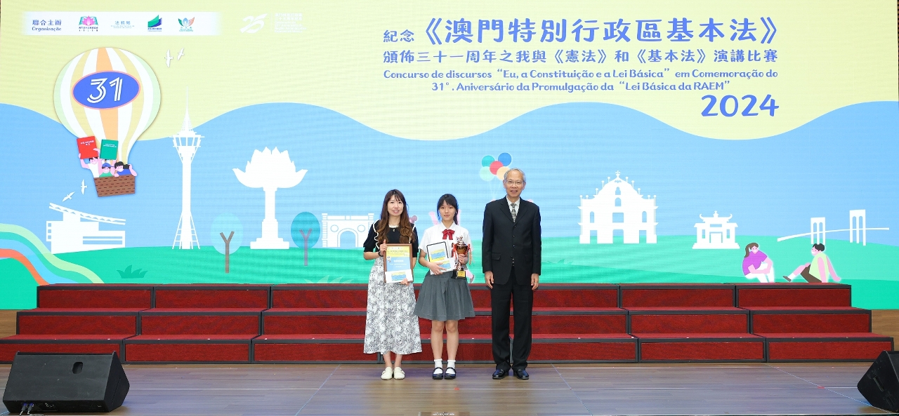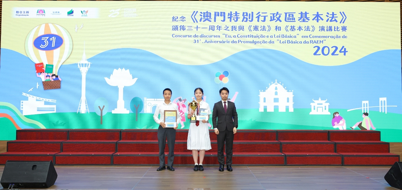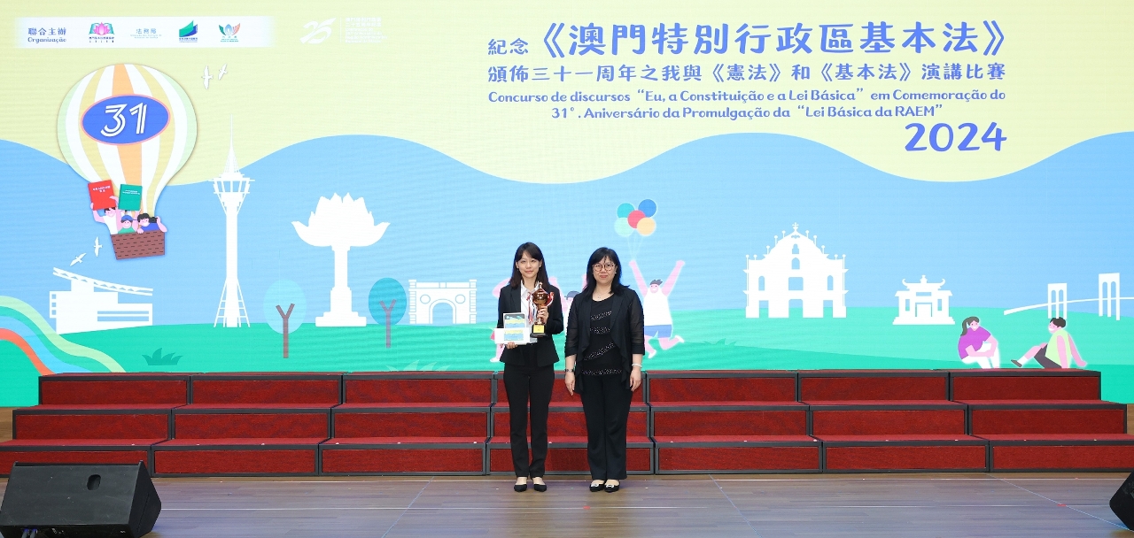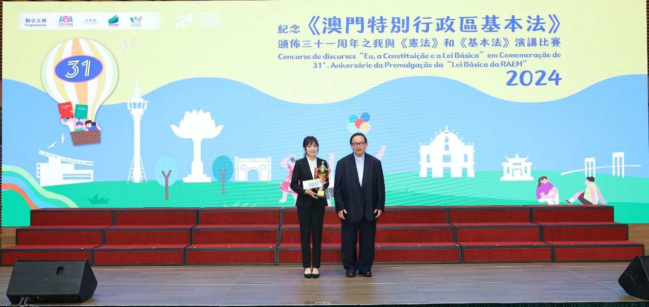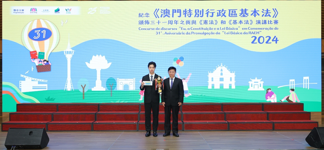 為持續向青年學生推廣《憲法》和《基本法》,澳門基本法推廣協會、法務局、教育及青年發展局和市政署聯合主辦的“紀念《澳門特別行政區基本法》頒佈三十一周年之我與《憲法》和《基本法》演講比賽”個人決賽及頒獎禮於5月28日在澳門科學館會議中心順利舉行。
