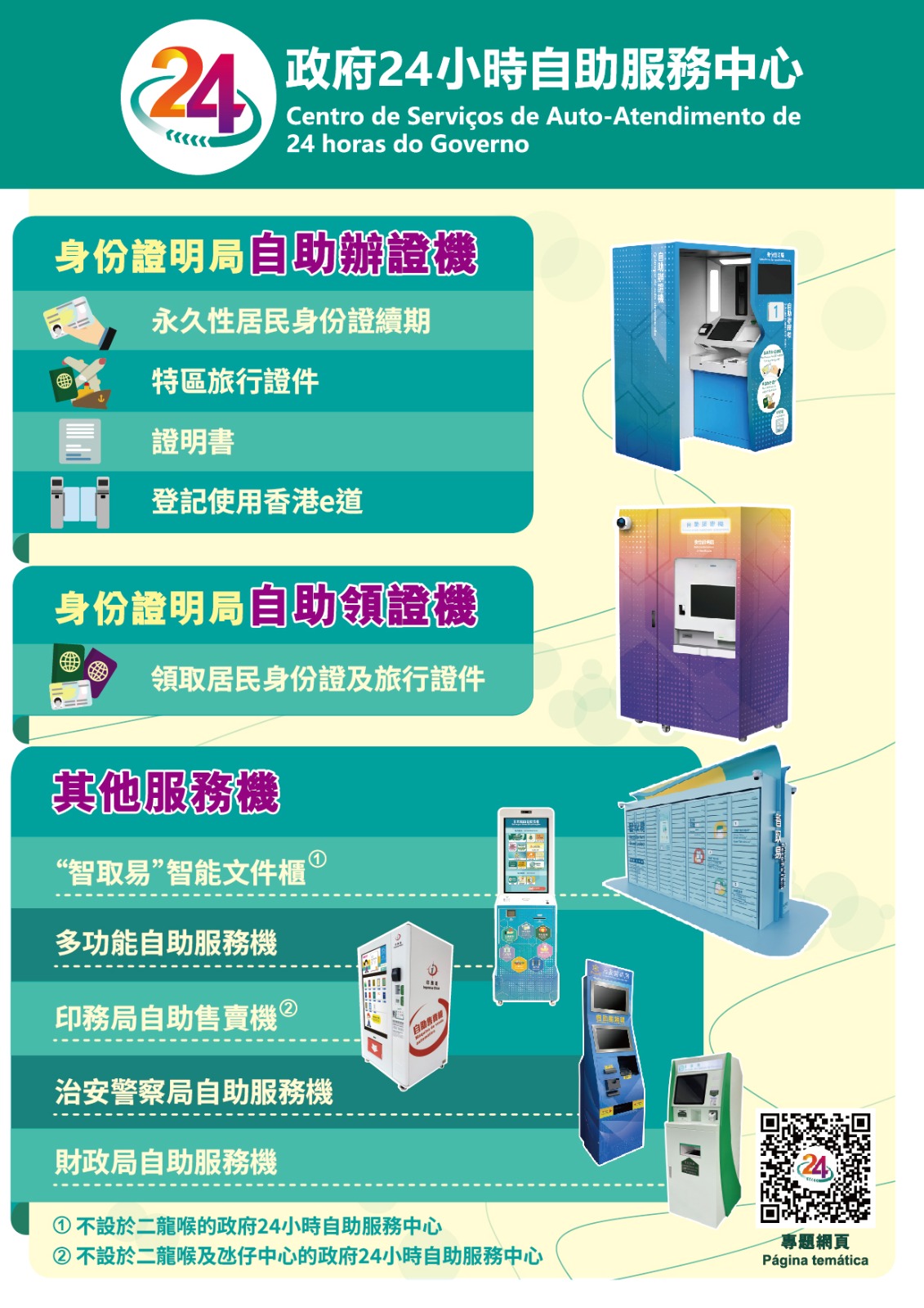 新推出的“智取易”智能文件櫃提供“7x24小時”無間斷服務,方便公眾在申請指定公共服務後,可選擇於六個政府24小時自助服務中心的文件櫃自助領取文件,不再受政府辦公時間限制。有關中心分別位於南灣、黑沙環、筷子基、氹仔中心、湖畔以及石排灣。