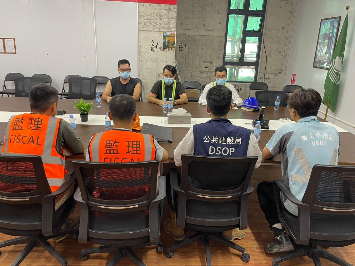 為保障工人安全,兩局已對相關承造商發出停工通知,勒令即時停止肇事地點的外牆棚架施工工作,公共建設局要求承造商全面配合勞工事務局調查事故原因,同時要求承造商及監理單位必須盡快調查事故原因,於短期內提交報告,並同時要求工程承造商檢視及優化防墜措施,杜絕安全隱患。