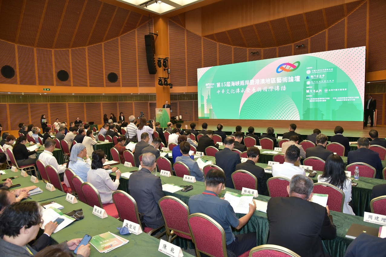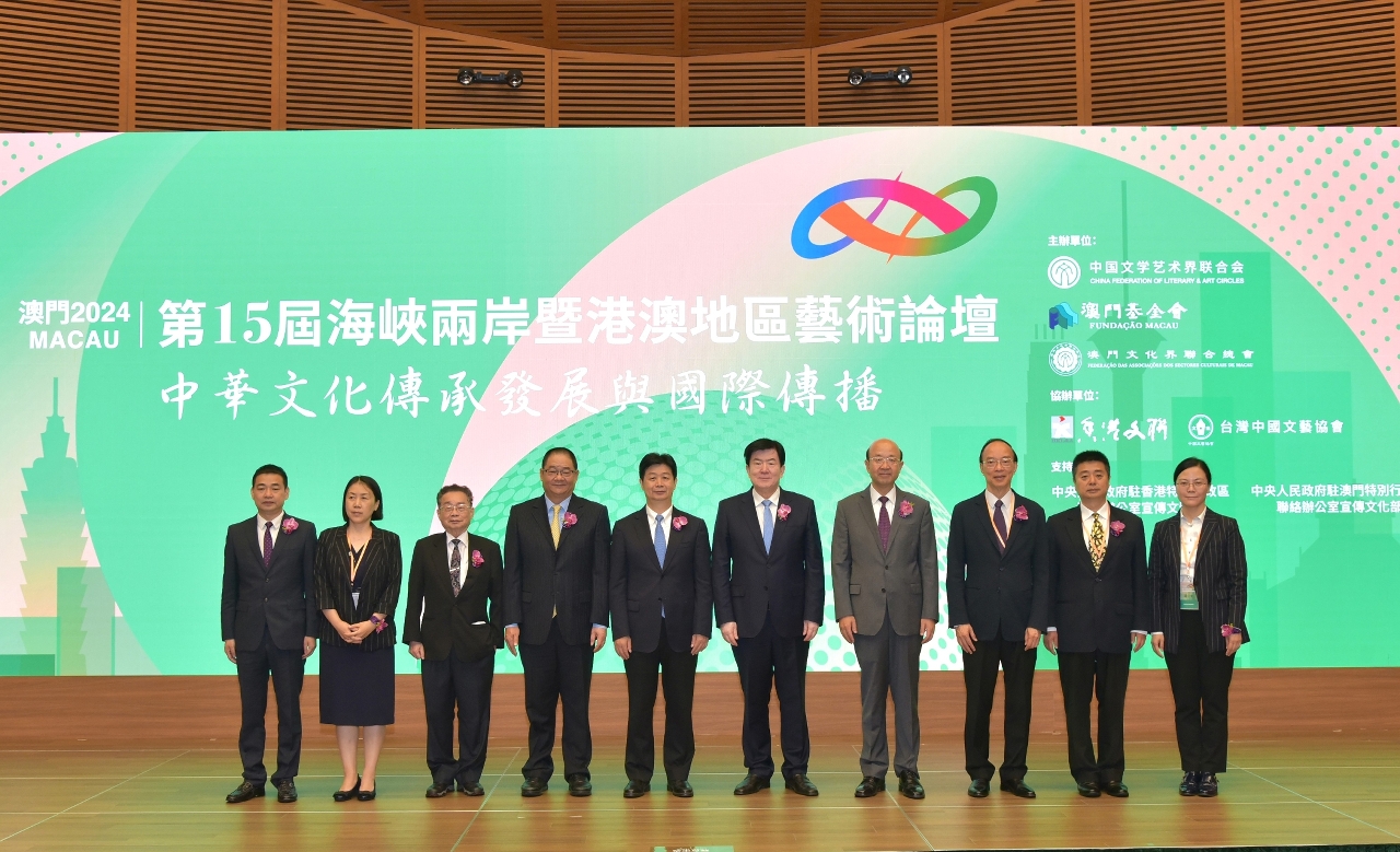 由中國文學藝術界聯合會、澳門基金會、澳門文化界聯合總會主辦,以“中華文化傳承發展與國際傳播”為主題的第15屆海峽兩岸暨港澳地區藝術論壇,於6月26日至27日在澳門科學館會議中心隆重舉行。海峽兩岸暨港澳地區的藝術專家及學者匯聚澳門,討論中華文明與當代文藝的審美以及全媒體時代中華文藝的創新與傳播,論壇至今舉辦至第15屆,多年來就不同的文化藝術範疇進行深入的研究與探討,共同為弘揚中華文化出謀獻策、推進海峽兩岸暨港澳地區的文化交流。