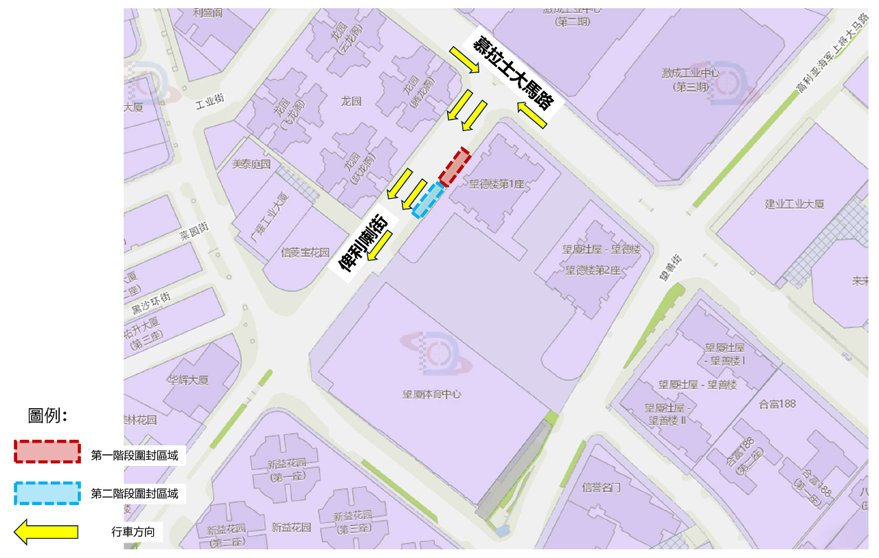 近望廈體育館一段俾利喇街配合施工實施有限度通車