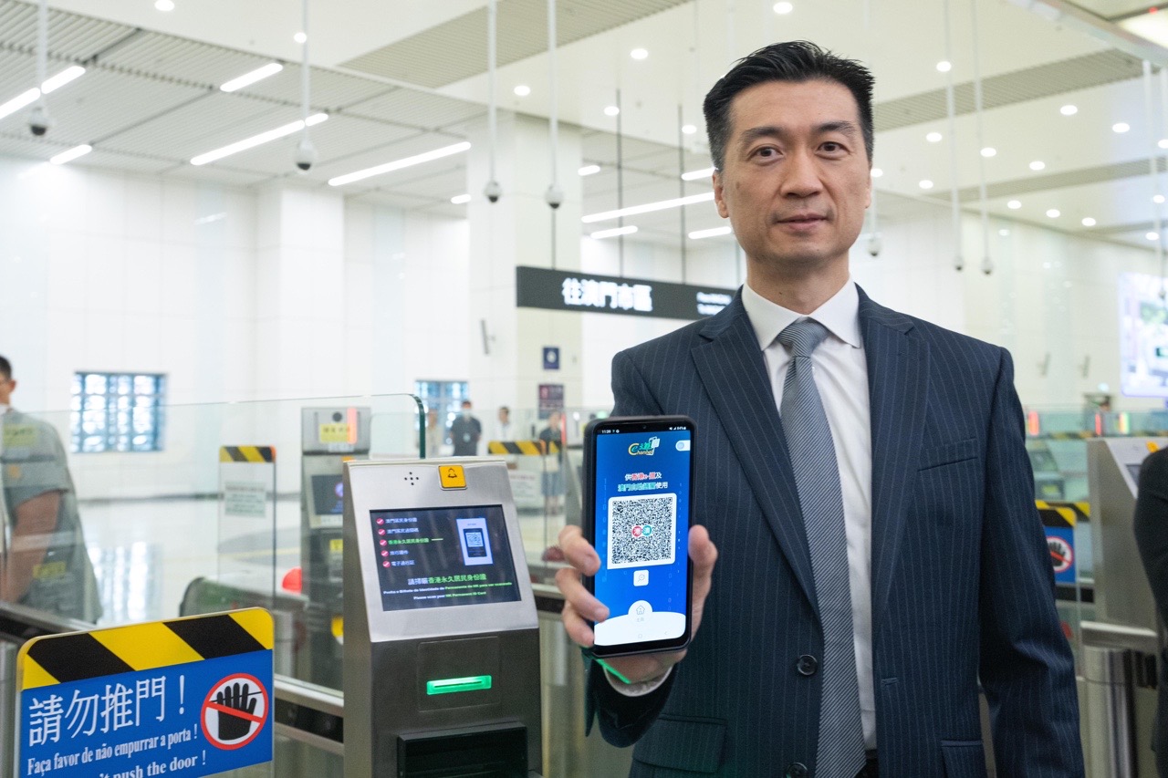 • 香港入境事務處柯重鈺助理處長現場示範香港居民使用“港澳通關二維碼”入境澳門