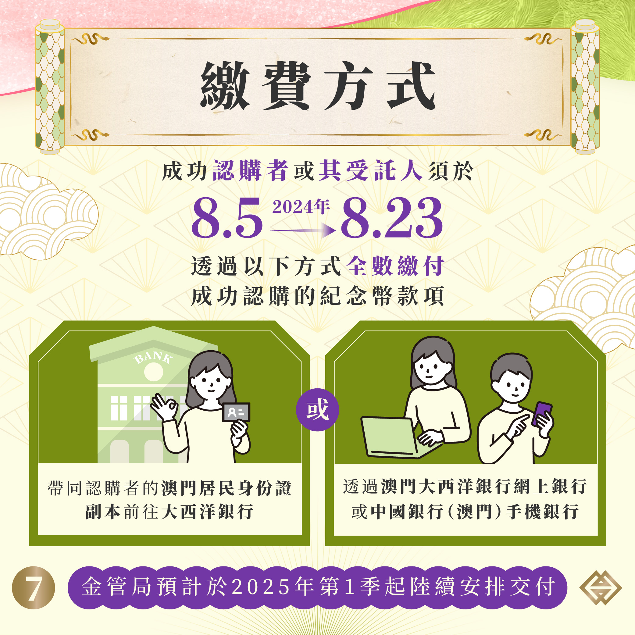 2025乙巳蛇年生肖紀念幣網上認購登記將於7月26日(下週五)下午6時正結束。澳門金融管理局提醒有意登記認購的市民,儘快於認購期限屆滿前辦理網上認購登記(https://registration.amcm.gov.mo/COCSCollection/terms_zh.html)。金管局位於士多鳥拜斯大馬路東曦閣的出納櫃檯將協助有需要的人士辦理登記認購手續。如有任何疑問,可瀏覽金管局網頁,亦可致電金管局專線2856 5071或2856 5072查詢。