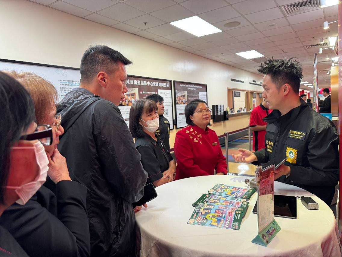蘇兆強副局長致辭時表示,近年世界各地的電訊網絡詐騙案件持續高發,本澳亦未能倖免,僅2023年因相關騙案而導致的經濟損失已超過3億澳門元,除了為被害人帶來巨大金錢損失之外,更對個別被害人造成嚴重心理、精神損害,本澳旅遊博彩業從業人員數目巨大,提升相關從業員的防騙能力,有利於防騙訊息向全社會輻射傳播,為此,司警局持續聯同相關企業開展不同形式的防騙防罪活動,冀增強社會大眾的防罪意識。
