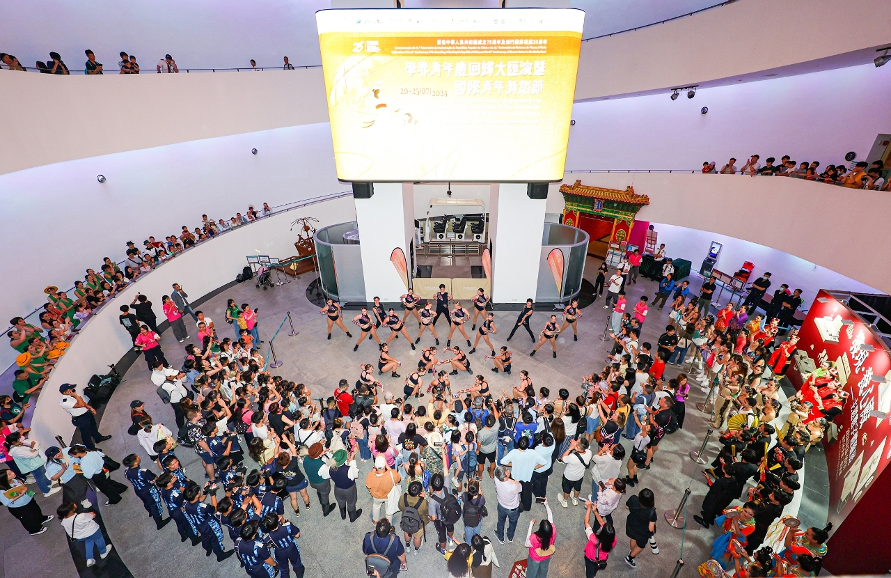 “學界青年慶回歸大匯演暨國際青年舞蹈節”於今(21)日順利舉行兩場快閃演出活動。快閃演出地點分別在澳門科學館及澳門上葡京綜合度假村,由來自世界各地及本澳的青年舞蹈員表演包括街舞、民族民間舞、爵士舞、中國舞、拉丁舞等多種舞蹈。活動突破舞台限制,讓市民和遊客更近距離欣賞,並有機會親身與各地舞者切磋“舞藝”。舞蹈員特別在科學館展覽中心中庭演出,活力四射地展現著舞姿,充滿了青春的朝氣,數百觀眾連綿不絕的掌聲響徹了整個科學館,場面熱鬧。