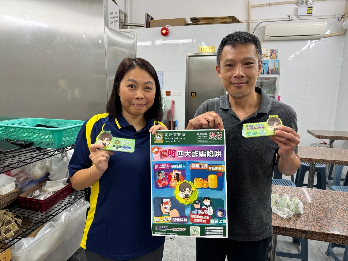 此外,司警局人員提醒商戶做好防盜措施,妥善保管店內貴重財物和設備,店員之間亦應互相照應,勿讓不法分子有機可乘。另外,亦鼓勵市民關注司警局在各社交平台的官方帳號,以瞭解更多警務消息和防罪資訊,並善用反詐程式查詢詐騙風險指數以及上報懷疑詐騙消息,警民合作共同防罪滅罪。