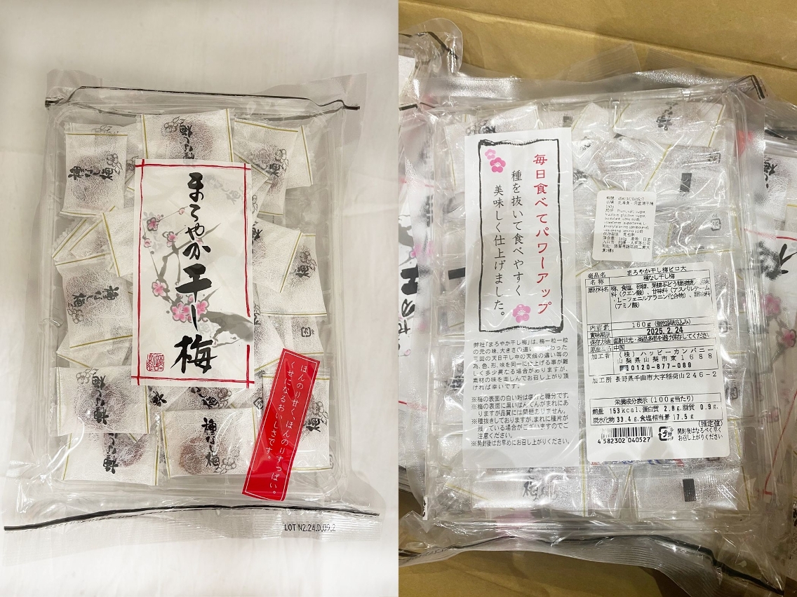 未能通過檢測的兩款預包裝糖漬水果,產品名稱為“Seedless Dried Sour-Sweet UME”,重量160克,來源地為日本,賞味期限為2025/11/05,被檢出每公斤含6.2克甜味劑阿斯巴甜。 另一款預包裝糖漬水果,產品名稱為“干梅”,淨重160克, 來源地為日本,賞味期限為2025/02/24,被檢出每公斤含2.59克甜味劑阿斯巴甜。上述兩款食品樣本均超出本澳《食品中食品添加劑使用標準》的規定。