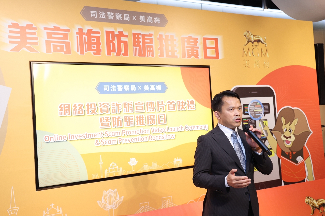 活動首日,由司警局及美高梅合作拍攝及製作的“預防網絡投資詐騙"宣傳片正式首映,同場更向10位企業員工授予“防騙大使"榮譽稱號,鼓勵他們成為企業的防騙宣傳領軍人物,警企共建防範網絡詐騙的社區安全網。