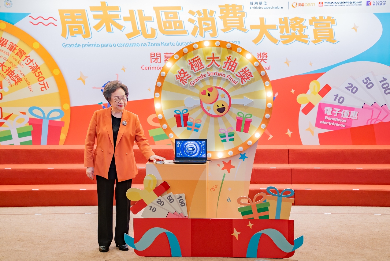 為提振北區經濟,改善民生區商戶的經營,特區政府聯同澳門中華總商會及澳門北區工商聯會於本年3月至8月期間舉辦為期20周的“周末北區消費大獎賞”活動,有關促消費活動已於8月4日結束,並於今(15)日在澳門中華總商會會址何賢先生紀念堂舉行閉幕式及終極大抽獎。