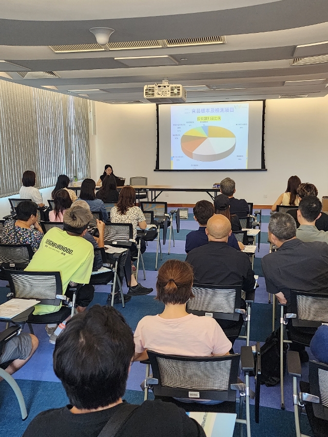 日前,市政署聯同衛生局舉辦“短保質期飲料專項食品研究調查結果業界分享會”,邀請是次採樣受檢之相關業界及生產經營者參與,解釋報告的細節,講解生產短保質期飲料的食安操作知識、規範,為本地食品業界提供針對性的實務建議。衛生局代表亦向業界講解有關減少飲料熱量和糖含量的建議,鼓勵參與“食得健康餐廳”,協助業界為市民提供健康餐飲選擇。