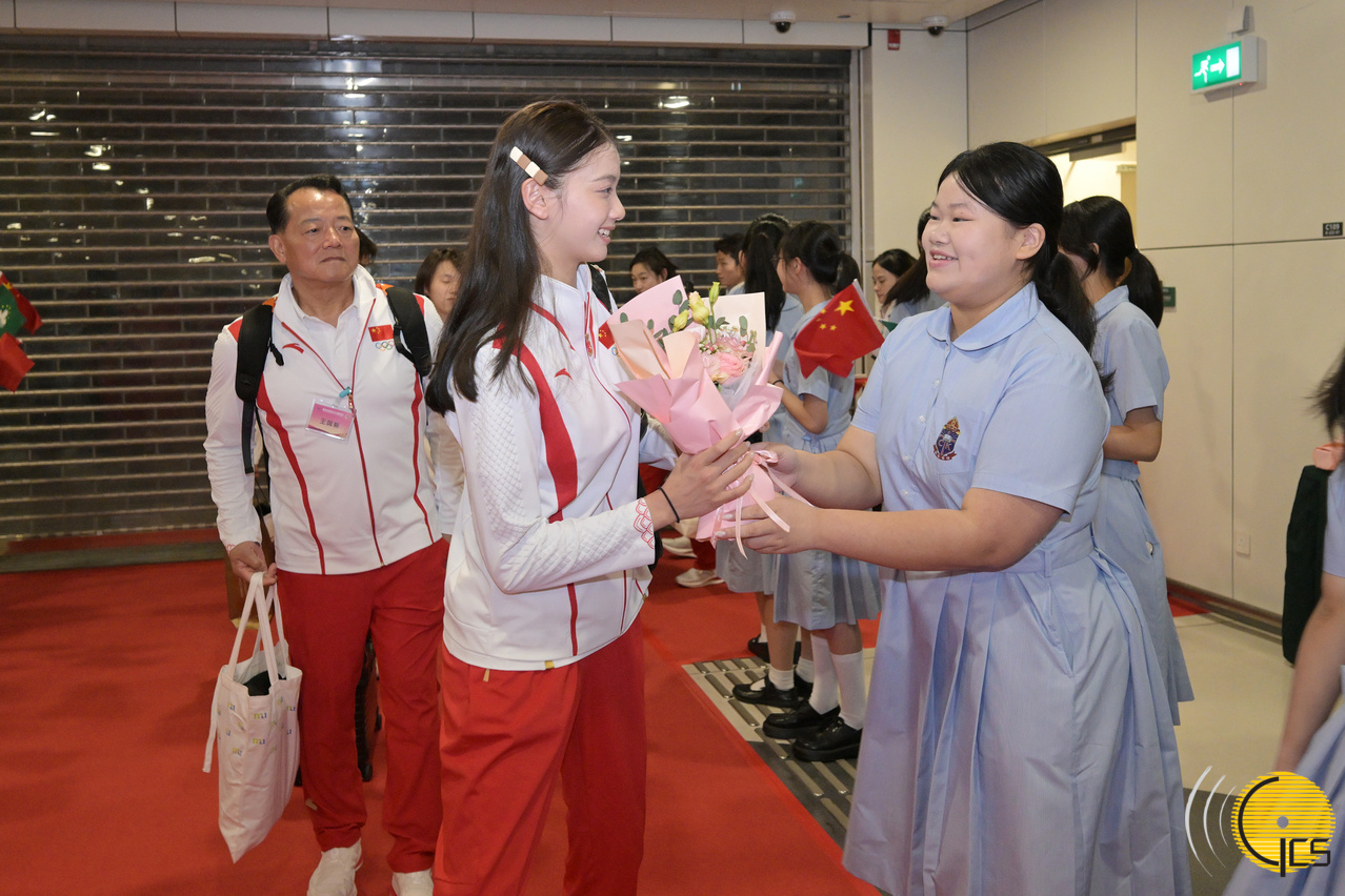 簡單而隆重的歡迎儀式上,150名本澳學生組成的歡迎隊伍,在紅地氈兩旁列隊,揮舞着國旗和區旗喜迎奧運健兒,20名學生向代表團團長、所有運動員及教練員獻花,同時,現場有30人組成的學校銀樂隊演奏,氣氛歡樂愉快。代表團一行與在場迎接的嘉賓合影留念,並於晚上出席特區政府所設的歡迎晚宴。