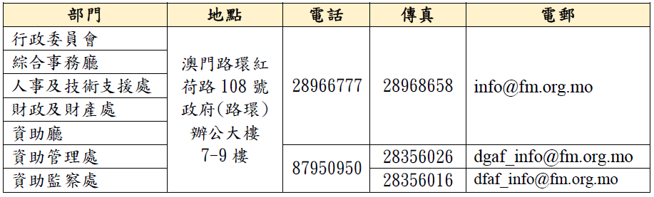 澳門基金會設於南灣時代商業中心13樓的資助服務接待處將於2024年9月23日(星期一)起遷往澳門路環紅荷路108號政府(路環)辦公大樓7樓,有需要辦理資助服務的居民或社團,敬請留意相關安排,而澳門基金會活動處將維持於南灣時代商業中心13樓辦公。