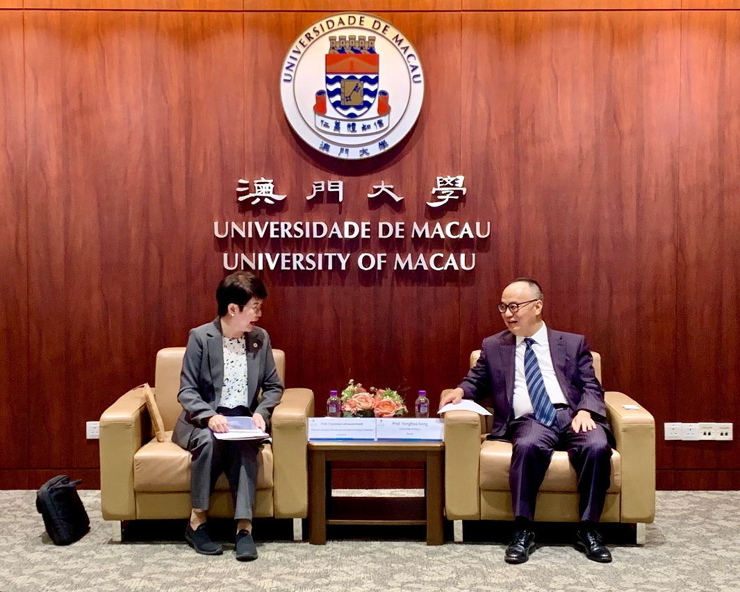 泰國國立發展管理學院校長Tippawan Lorsuwannarat率代表團訪問澳門大學,獲澳大校長宋永華熱情接待。雙方就兩校合作展開探討交流。