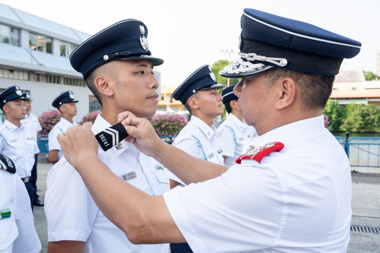 儀式由黃文忠關長主持,一眾人員在宣誓後,由海關領導及主管為學員佩戴肩章,正式成為海關關員。是次就職的人員中,超過百分之八十具備學士學位或更高學歷,總成績優異獎由歐陽敏琪獲得。