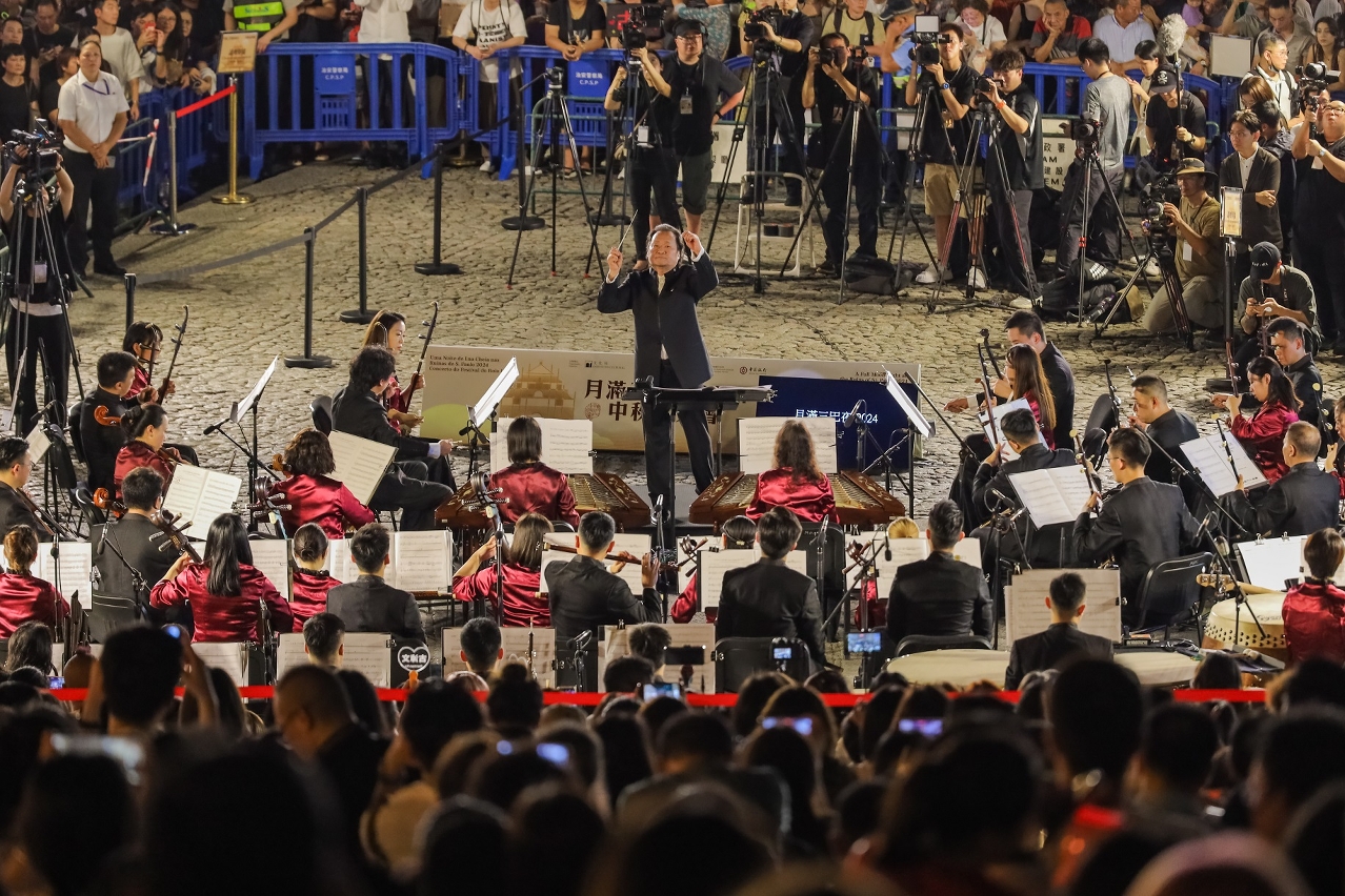 由文化局主辦、澳門樂團有限公司承辦的“月滿三巴夜2024”中秋音樂會,於今晚(17日)8時及9時在大三巴牌坊舉行,澳門中樂團在瑰麗的世遺景區呈獻多首經典樂曲,吸引市民遊客欣賞,歡度團圓佳節。