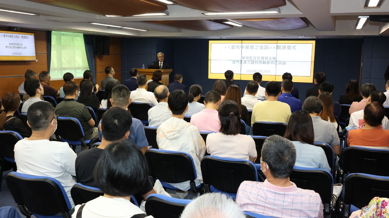 由藥物監督管理局主辦、澳門生產力暨科技轉移中心承辦的《面向中藥房的培訓課程》於本年9月20日及26日舉辦,今天舉行了簡單而隆重的開班儀式。