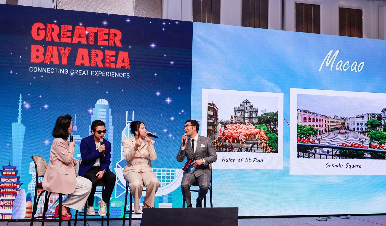 印尼藝人Bastian Bintang Simbolon及Sitha Marino於7月獲邀到粵港澳大灣區拍攝電視旅遊節目“Celebrity on Vacation”,向印尼觀眾介紹大灣區各地的文化古蹟和熱門景點,節目將於印尼Trans TV電視頻道播放。兩位藝人更在雅加達“大灣區—融匯精彩體驗”活動上分享在大灣區拍攝期間的經歷,並向與會者介紹三地的新興遊玩元素,藉此吸引更多印尼旅客到大灣區旅遊。