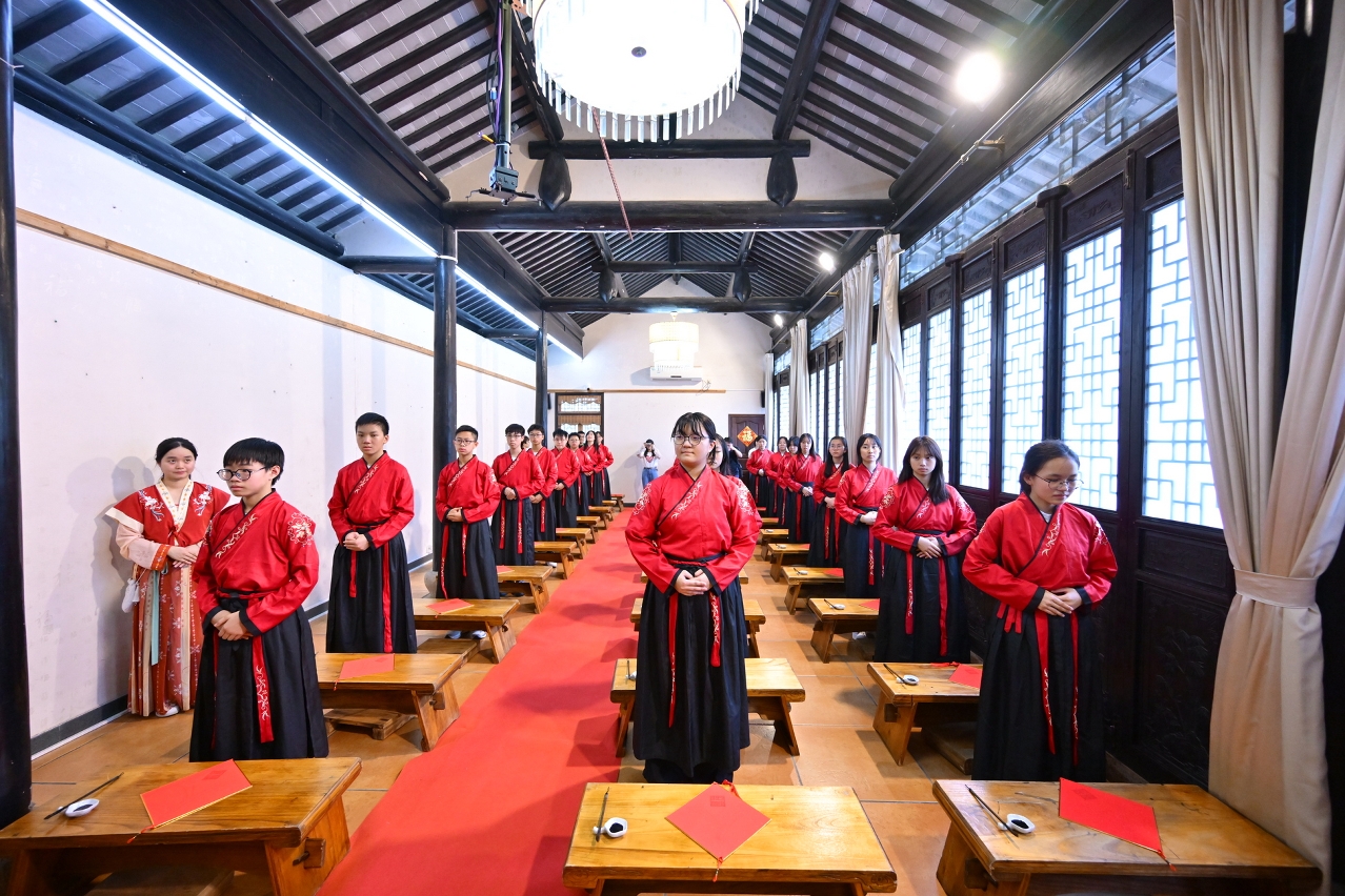 8月上旬,學員到訪中山詹園,觀賞中國園林藝術期間試穿傳統漢服,體驗我國傳統文化儀式“開筆禮”,瞭解“先正衣冠、再明事理”的重要性,其間還參與陶藝創作,研習創意技法。隨後前往集收藏、研究、展示、教育於一體的中山市博物館,參觀常設展覽及特展“雄才大略漢武帝——劉徹和他的時代”,感受歷史風雲變遷。交流團最後到訪孫中山故居紀念館,學習孫中山生平事蹟和中國近代史,並通過瞭解當地非遺項目及嶺南文化,領略中華民俗風情,增進文化自信。