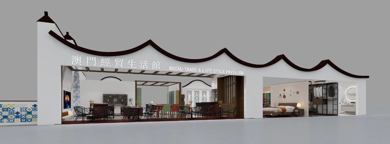 “澳門經貿生活館”是澳門廠商聯合會、澳門出入口商會、澳門紡織商會和澳門付貨人協會聯合組辦,以“衣食住行,時尚展現”為題,透過居家場景形式,展現四會不同服務領域的澳門特色產品和服務。同時館內安排小品劇表演,提升展示及互動效應,助力本地中小企業藉會展平台“走出去”。