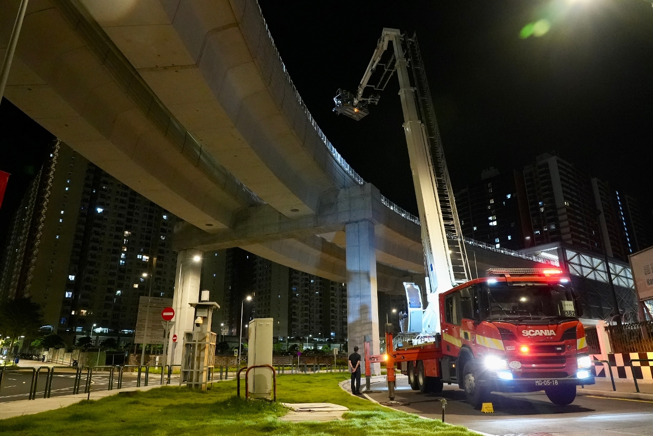 為加強與澳門輕軌股份有限公司在發生緊急事故時的應變措施及溝通協調機制,消防局於本年10月8日凌晨,與上述公司在輕軌列車石排灣線舉行聯合消防演習。
