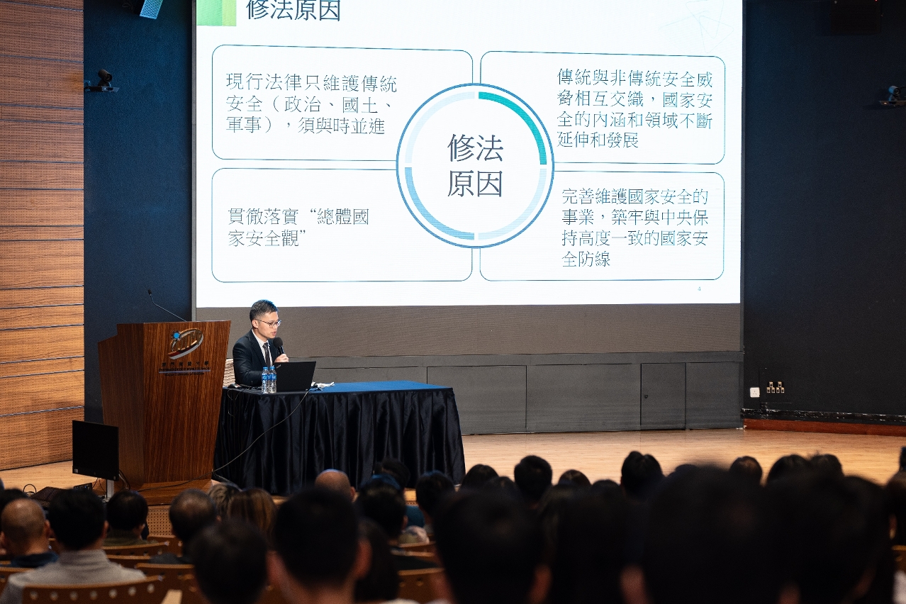 為積極響應澳門特區政府推動的國家安全教育工作,深化教職員對國家安全的認識,並加強對《維護國家安全法》在澳門實施的重要性與實踐意義的理解,澳門旅遊大學於10月4日下午特別邀請司法警察局國家安全情報工作處處長黃健漢先生蒞臨校園,主講《維護國家安全法》專題講座。此次講座吸引超過150位教職員踴躍參與。